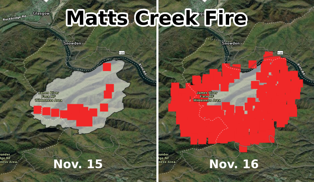 Matts Creek wildfire in Bedford County sits at 11,020 acres, 100